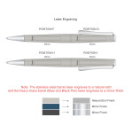 Elegant twist action ball pen with the choice of a brushed stainless steel barrel and a heavy brass barrel with matt finishes. This stunning pen features a unique propeller inspired clip with matching shiny chrome accents. It has a black LAMY M16 refill with 8000 metres of writing ink and a tungsten carbide ball for improved writing quality. STUDIO is 100% made in Germany with the LAMY brand tastefully inscribed on the upper barrel and it is beautifully presented in a LAMY gift box. The stainless steel barrel laser engraves to a natural etch and the heavy brass barrel laser engraves to a mirror finish.