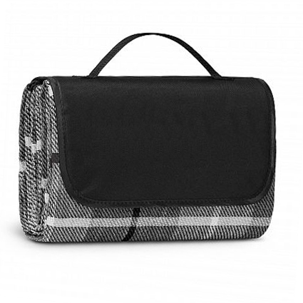 1200mm x 1370mm woven polyester fleece picnic blanket with a water proof PE backing. It folds up after use with a Velcro closure and has a handy carry handle.